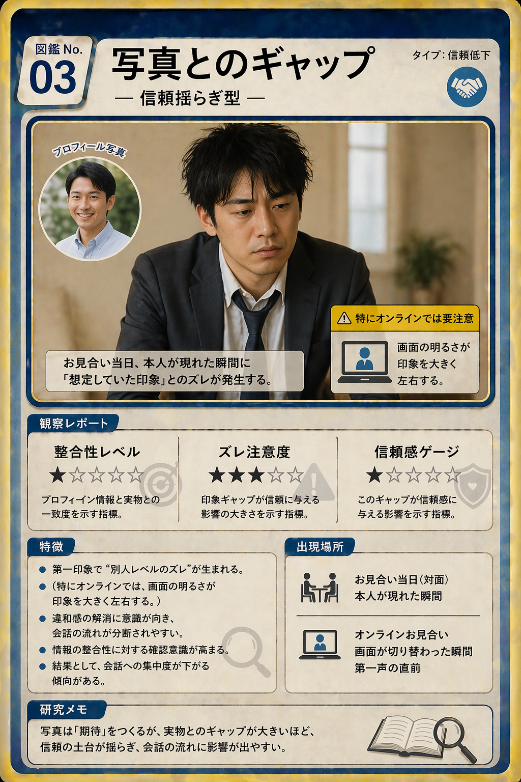 プロフィール写真と実物の乖離。